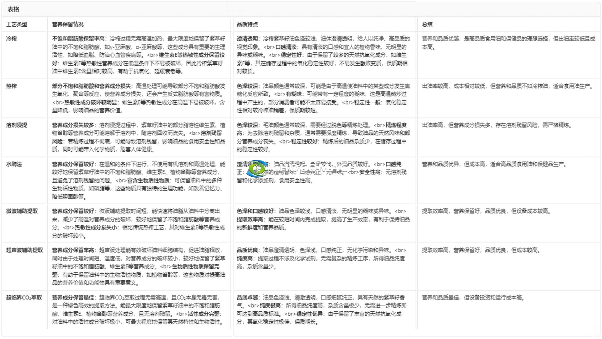 在選擇加工工藝時,需綜合考慮產(chǎn)品用途、成本效益及對營養(yǎng)和品質的要求等因素。對于食品級或保健品級紫草籽油生產(chǎn),冷榨、水酶法和超臨界 CO?萃取等工藝更具優(yōu)勢。